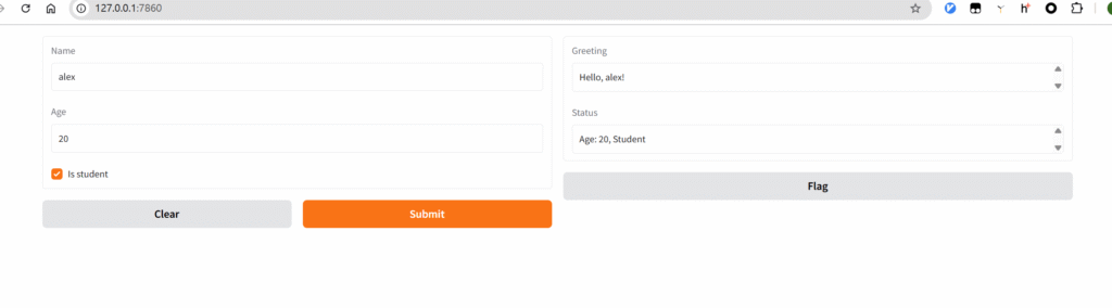 - Component-Based Design: All interactive components provided by Gradio (such as