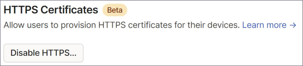 To do this, we first need to enable the HTTPS certificate service on the Tailscale configuration page: