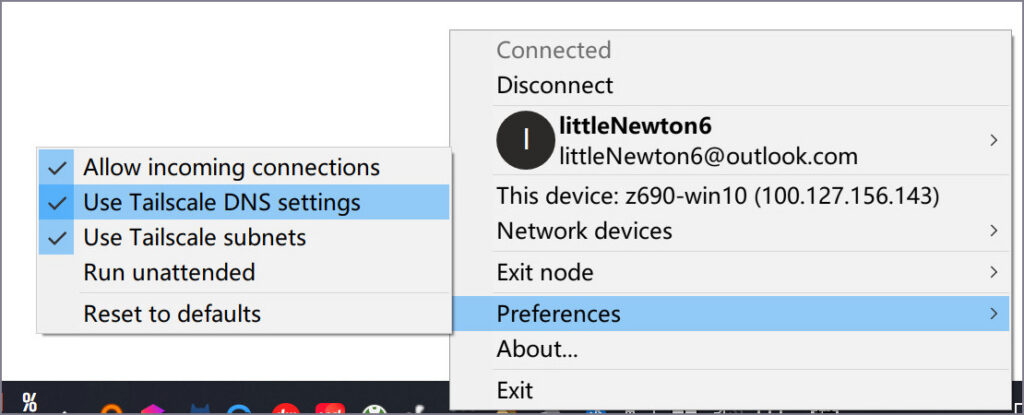 - On the “exit device” (such as a home computer), open the Tailscale client → “Settings” → enable “Act as exit node.”